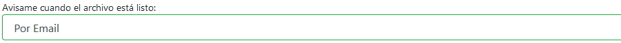 - Elija un método para recibir una notificación cuando su archivo esté listo: Correo Electrónico, SMS, WhatsApp -